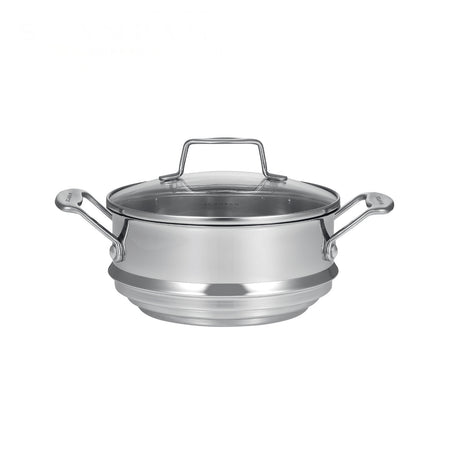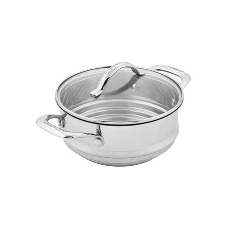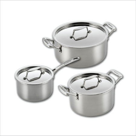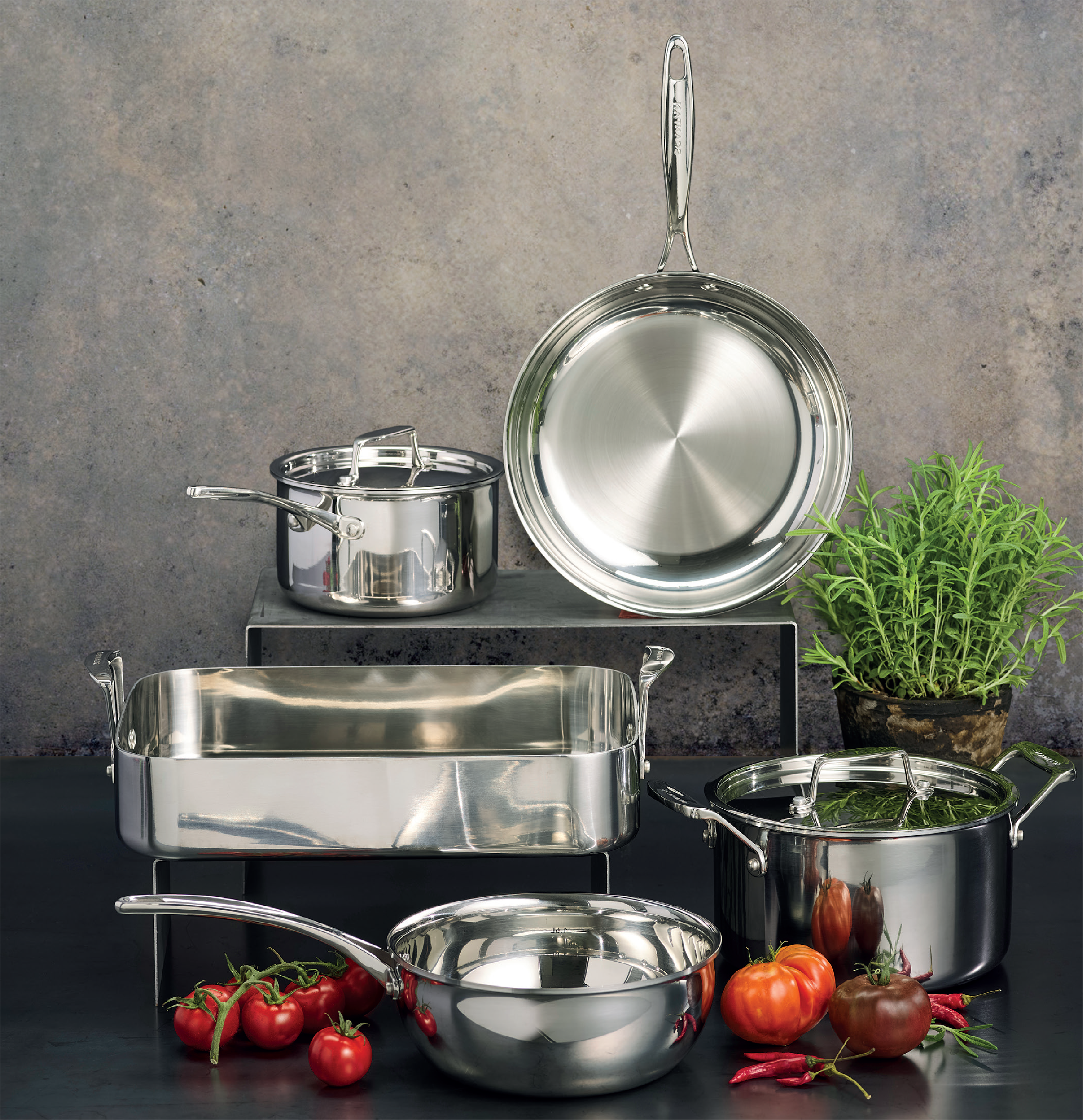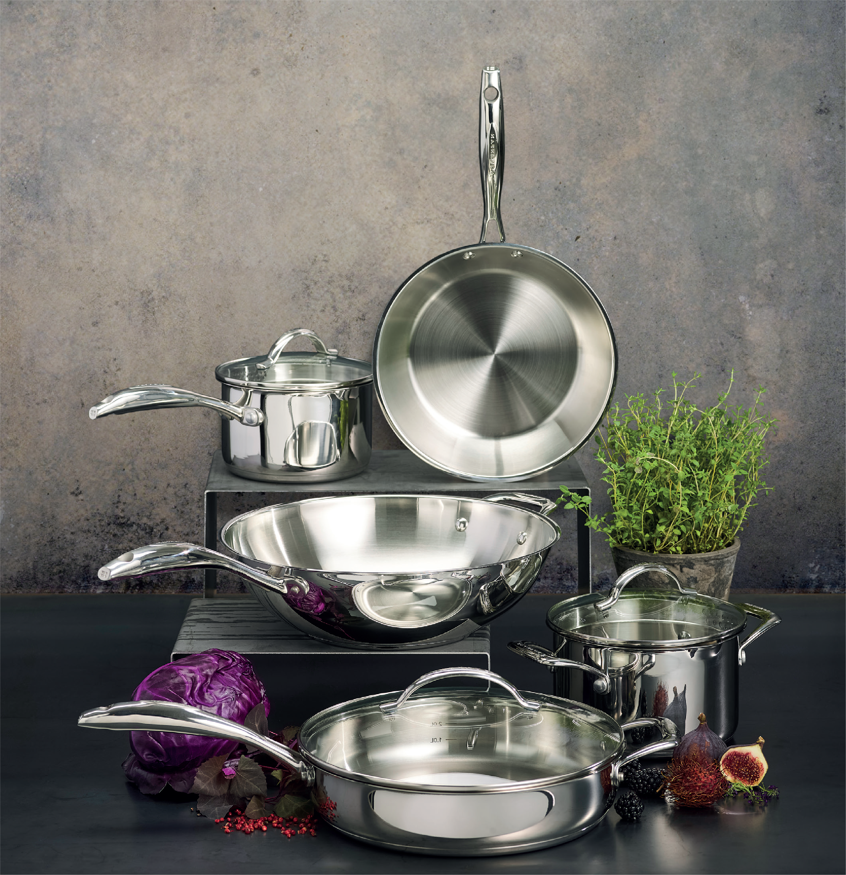 Clean lines and a steel lid that not only makes the series stylish, but also easy to clean. There are no angled edges that can capture food debris and the stainless steel makes Fusion 5 dishwasher safe. And how does SCANPAN Fusion 5 cookware achieve such fantastic results? The secret is the construction.