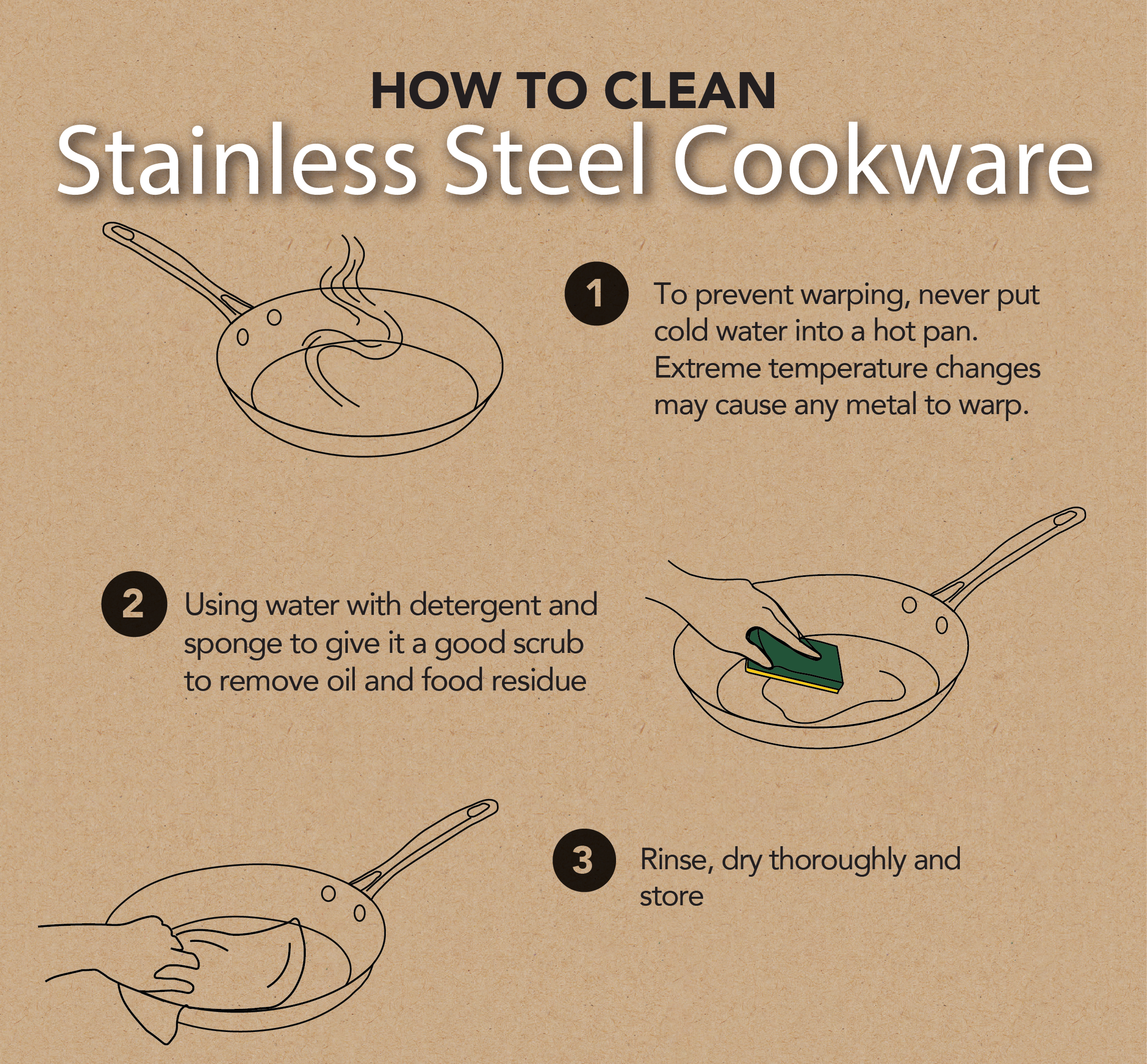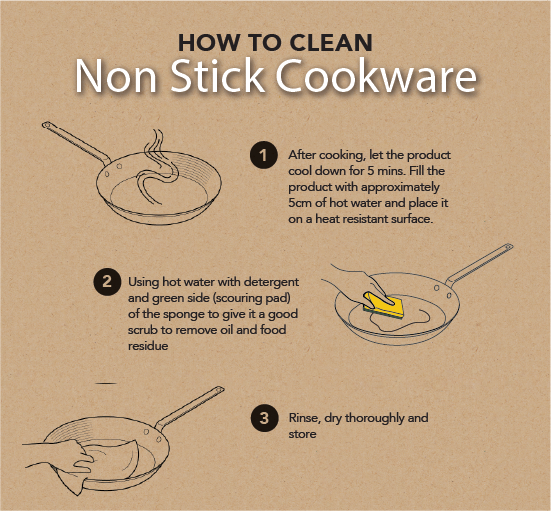 - Never use a metal or other harsh scourer nor harsh powder to clean your cookware.