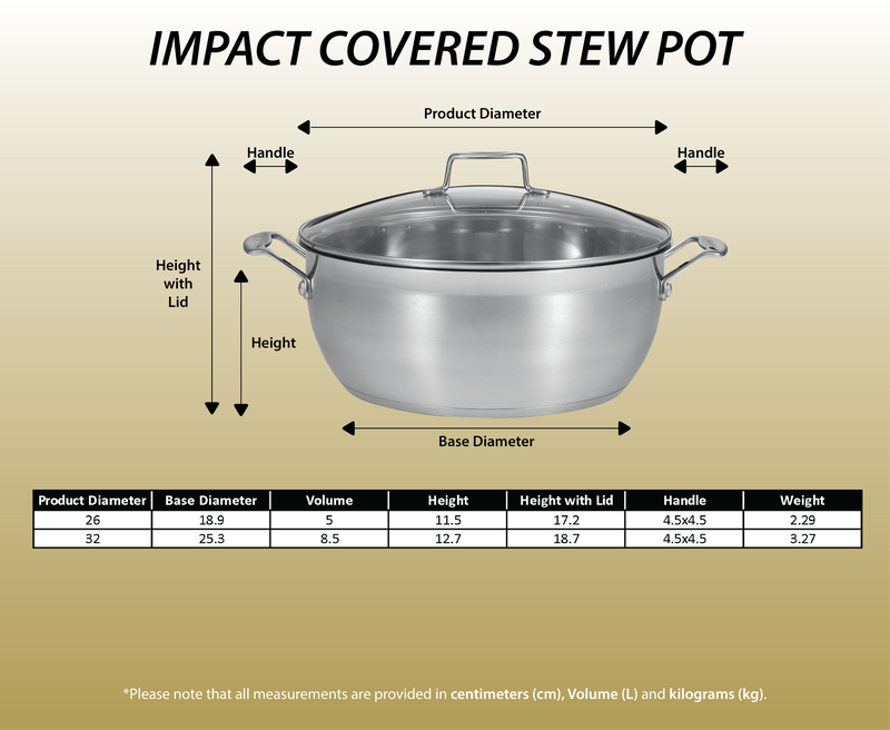SCANPAN Impact features a heavy impact bonded base with a disk of aluminium enveloped between two layers of high quality stainless steel to provide optimal heat transfer and retention. For maximum durability, the walls of SCANPAN Impact are made from 18/10 stainless steel, while the base has an 18/0 stainless steel protector, ensuring that the cookware is suitable for all energy sources, including induction. The range features cast stainless steel handles, designed to stay cooler for longer with internal stainless steel rivets for added strength.